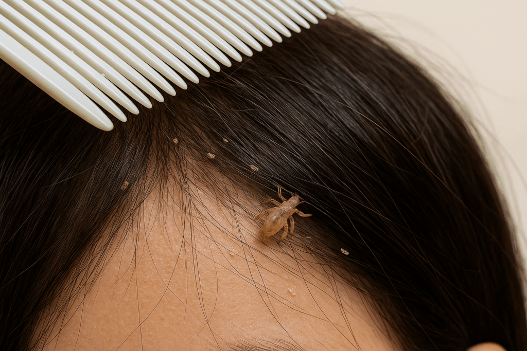 シラミが髪の毛に寄生し、吸血することで頭皮にアレルギー反応を生じ得る病気です。
