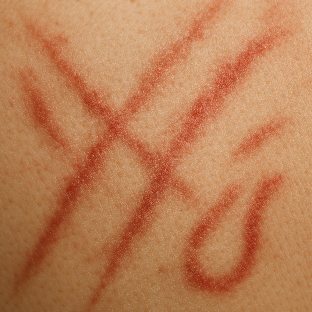 ひっかくとすぐミミズ腫れになる体質 外的刺激によるもので、食べ物とは無関係